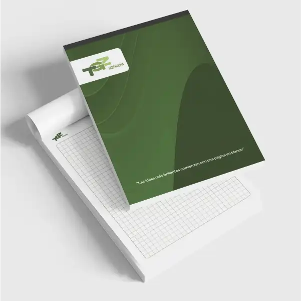 • Hojas Interiores: Papel Bond 75gr o 90gr, impresas a 1 o 2 colores con tu logo (rayadas o cuadriculadas).